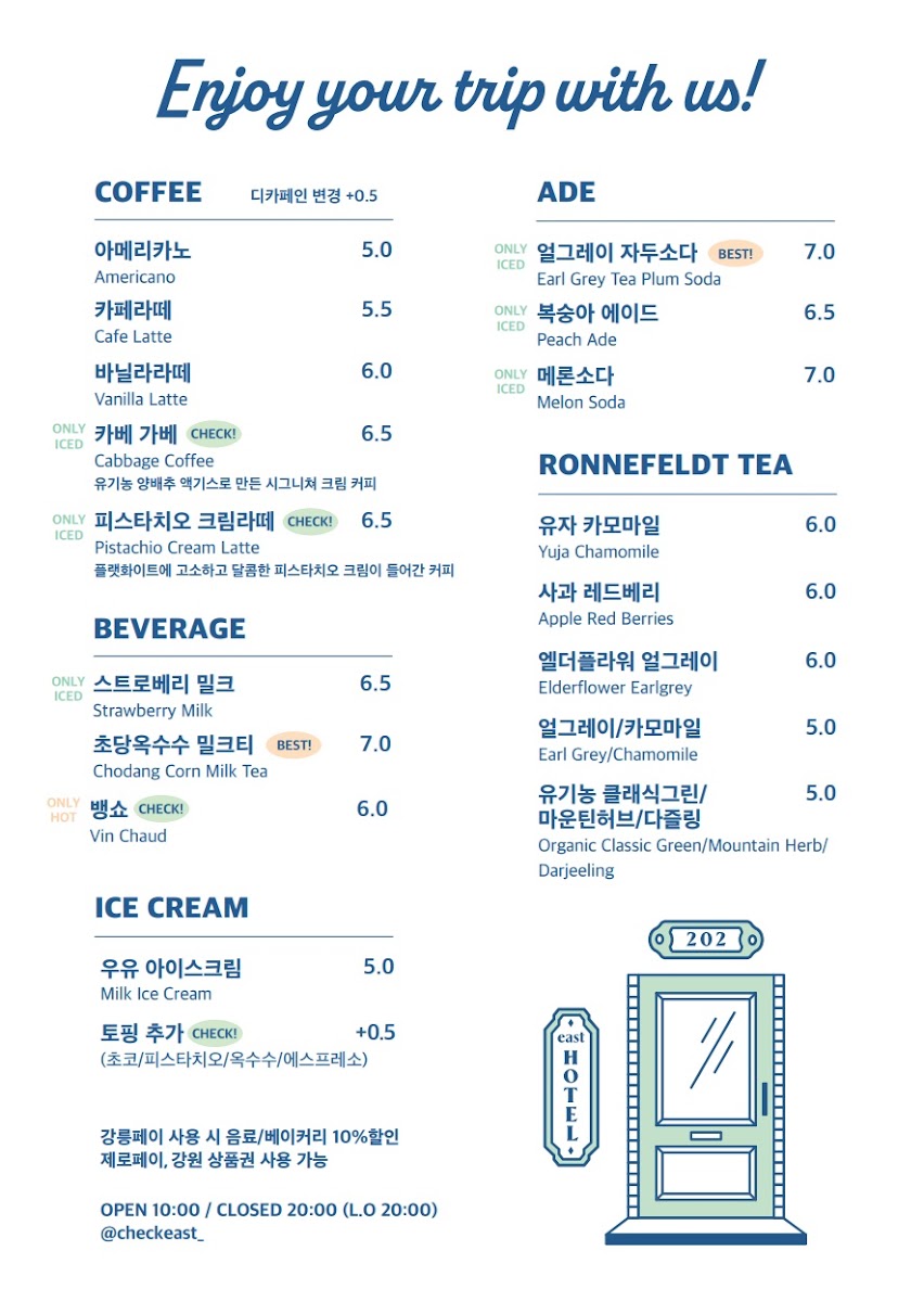 As you approach Check East, the charming exterior beckons you closer with its pastel tones and inviting decor, setting the stage for the delightful moments that await within. The ambiance is akin to stepping into a beautifully curated living space—a perfect blend of modern and whimsical elements, accented by soft background music that encourages relaxation and enjoyment.